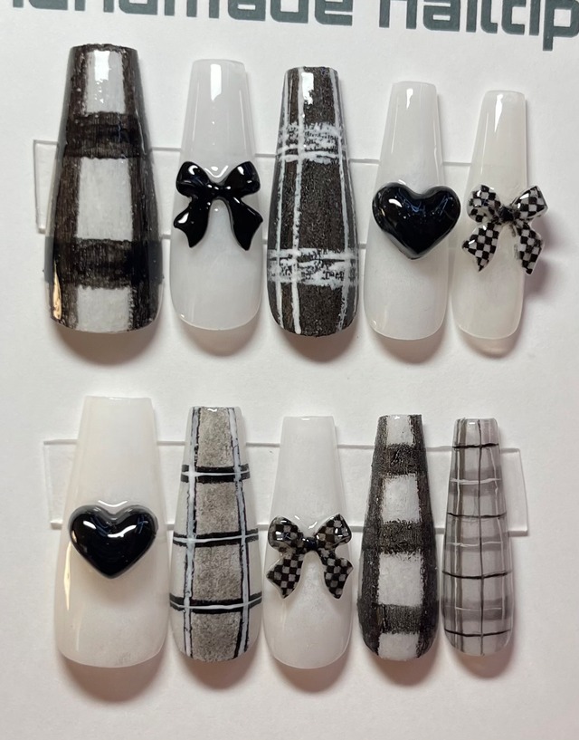 【現品】ネイルチップ つけ爪 チェックネイル 冬ネイル